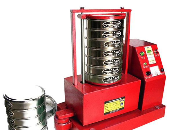電機(jī)帶動(dòng)齒輪通過(guò)同步帶傳動(dòng)到主軸上,經(jīng)齒輪變速后主軸按要求的轉(zhuǎn)速轉(zhuǎn)動(dòng),主軸帶動(dòng)偏心輪使滑板做往復(fù)運(yùn)動(dòng),帶動(dòng)安裝在滑板托盤(pán)中的試驗(yàn)篩左右搖動(dòng),同時(shí)主軸帶動(dòng)頂桿齒輪轉(zhuǎn)動(dòng),變速后頂桿齒輪通過(guò)凸輪頂擊頂桿,頂桿使拍錘上下排擠試驗(yàn)篩上蓋,使得試驗(yàn)篩、分樣篩中的物料往復(fù)和上下振動(dòng),使小于試驗(yàn)篩篩面網(wǎng)孔的物料顆粒篩分進(jìn)下層試驗(yàn)篩,如此層層篩選,使每層試驗(yàn)篩內(nèi)只留相同粒度的物料。達(dá)到不同粒度的分離并確定此物料的粒度組成。
