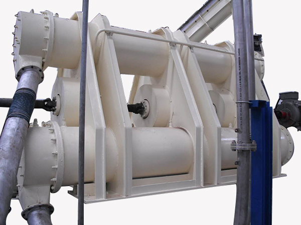 雙圓筒依靠聯(lián)接板固定成一體,聯(lián)接板上同時固定著激振器,且激振器需通水冷卻,雙圓筒由隔振彈簧支承,彈簧支座固定在不參振的底架上。圓筒筒體由外筒、內(nèi)襯筒和端蓋組成。內(nèi)襯筒是可更換的,由耐磨材料制成。ZM系列振動磨的激振器由四組主副偏心塊組成,調(diào)整副偏心塊和主偏心塊的相位角,可改變激振力的大小,從而達到調(diào)整振幅大小的目的,振動磨雙振幅的近似值可以從振幅標示牌上讀出。圓筒內(nèi)的粉磨介質(zhì)有鋼球或鋼棒兩種。相同直徑和級配的情況下,鋼棒做介質(zhì)時的產(chǎn)率要高于鋼球做介質(zhì)時的產(chǎn)率。因為用鋼球做介質(zhì)時,要達到同樣的粉狀粒度,粉磨時間較長,但鋼球做介質(zhì)時能達到更細的粒度。振動磨常用介質(zhì)為Φ16-Φ36mm的鋼棒,鋼棒應經(jīng)過滲碳和淬火,表面硬度應達到HRC55以上。入料粒度>15mm時取較大直徑,入料粒度<15mm時取較小直徑,并采用兩種不同直徑鋼棒的混合級配較好。